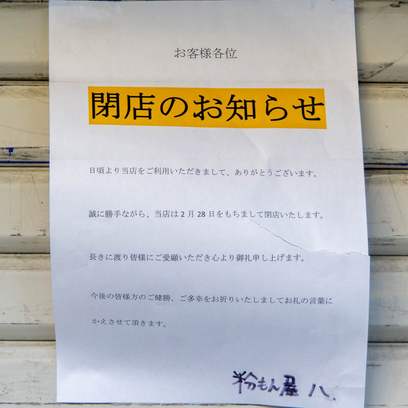 阪急高槻市駅ちかくの「粉もん屋八」が閉店してる