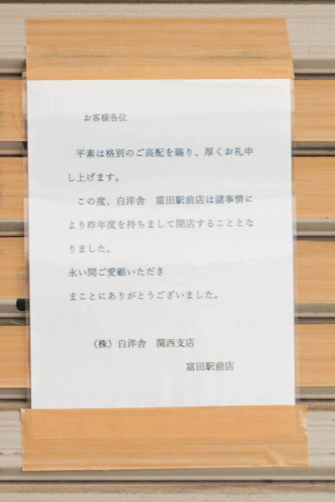 富田町の「白洋舎」が閉店してる