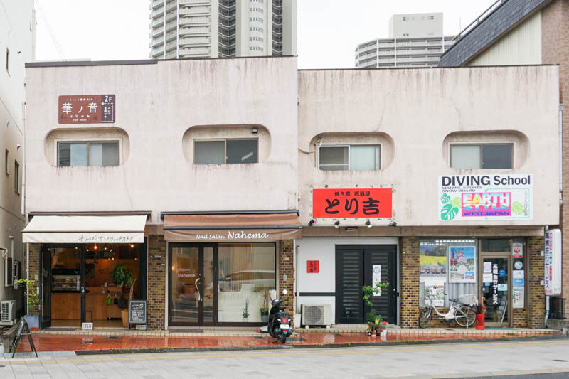 建物一番左側、グルメ記事にもしたわんぱくサンドウィッチストアの2階。「華ノ音」の前のお店などはわからず。