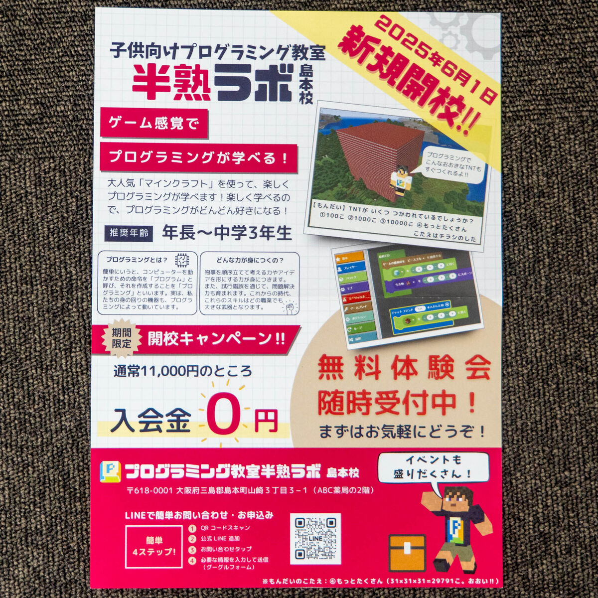 島本町山崎に「半熟ラボ」ってプログラミング教室ができてる