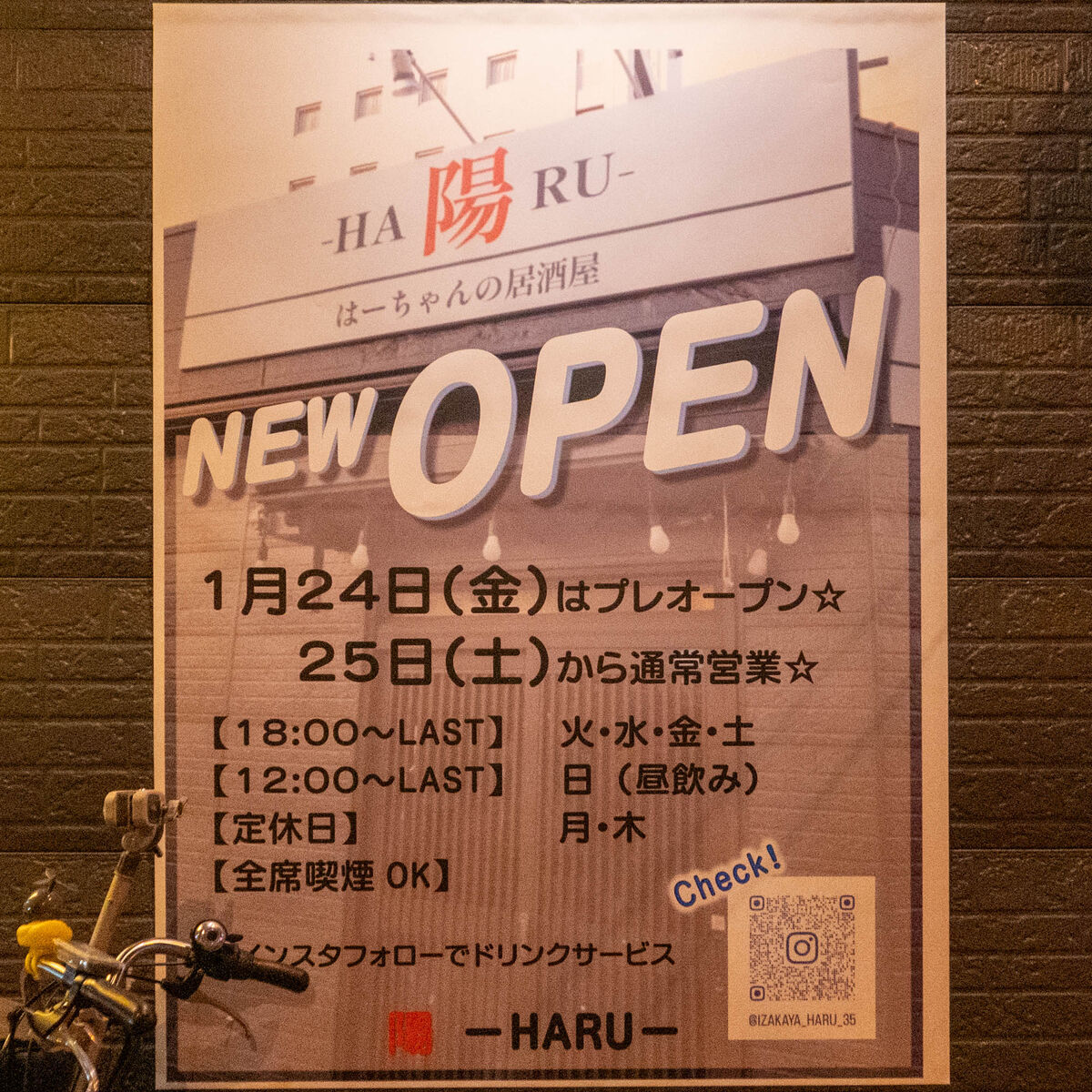 171号線ぞい城北町に「陽-HARU-」って居酒屋できてる