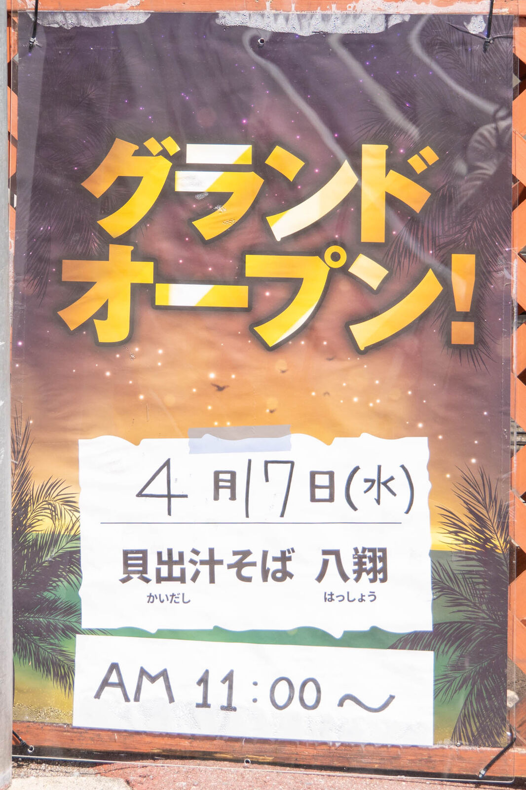 171号線ぞい城北町につくってた「貝出汁そば 八翔」がオープンしてる