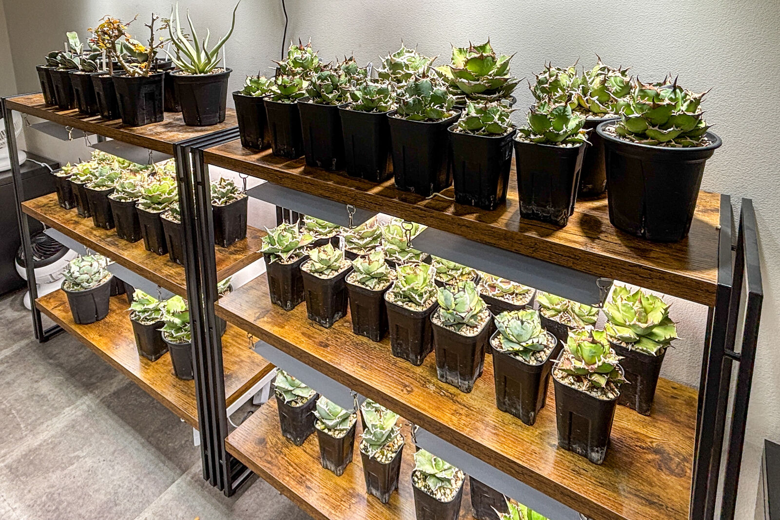 現在はアガべ(トゲのある多肉植物で、放射状に葉が広がる丈夫で乾燥に強い植物)がメインのようですが、今後は塊根植物なども入荷予定とのこと。
