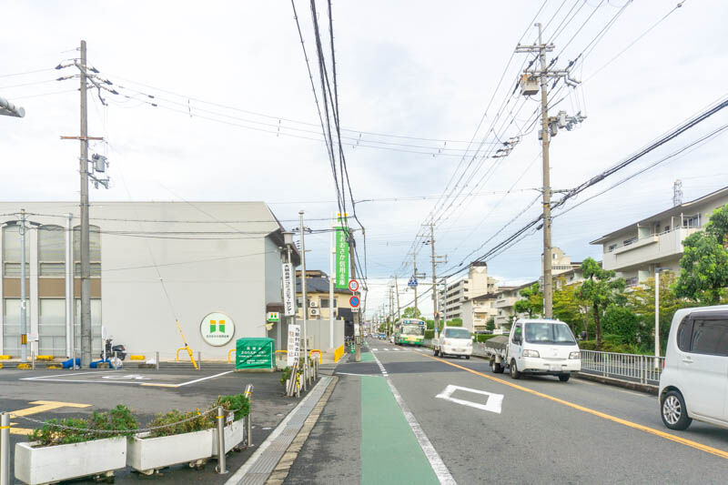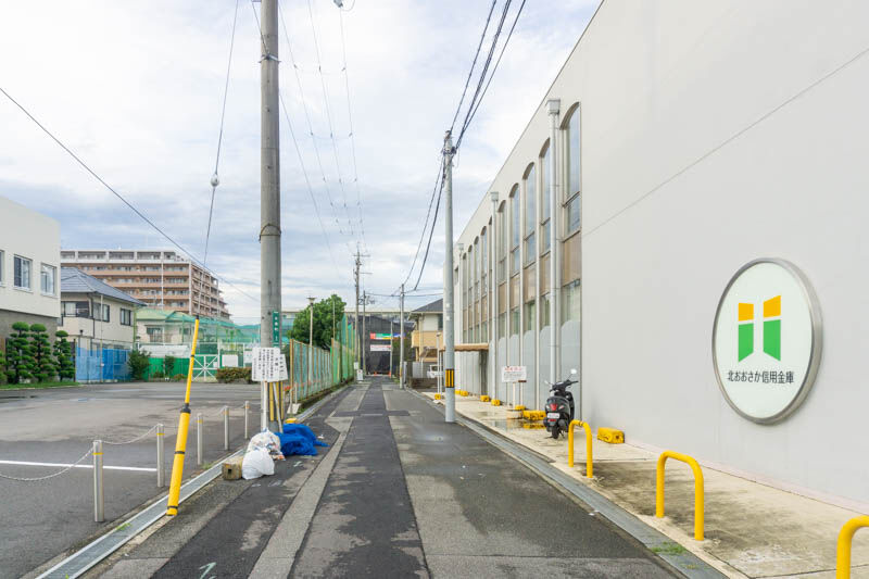 府道17号線にある、北おおさか信用金庫の手前を左に曲がりまして