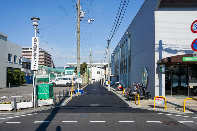 府道17号線沿いの北おおさか信用金庫と大冠北第1コミュニティーセンターとの間の道をまっすぐ行くと、