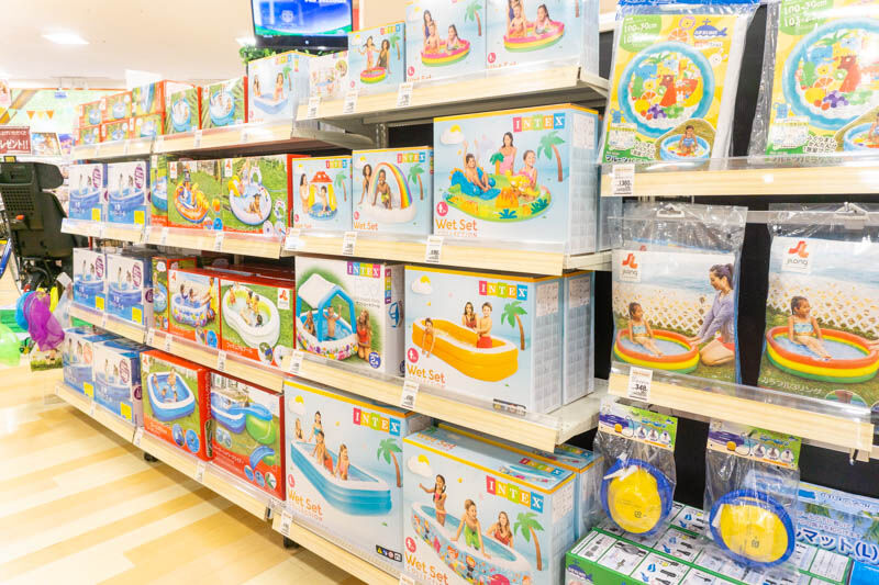 これからの季節に活躍しそうな水遊びグッズ、花火なども。