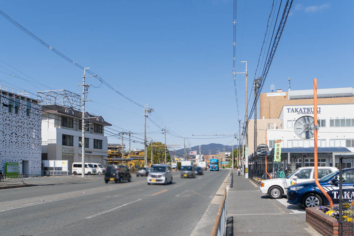 反対方向に行くと、ビッグボーイや高槻中学校・高校などがあります。