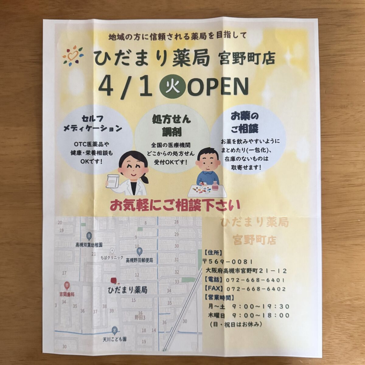 宮野町につくってた「ひだまり薬局」がオープンしてる