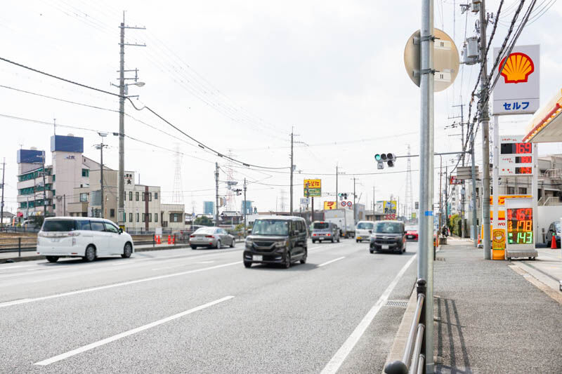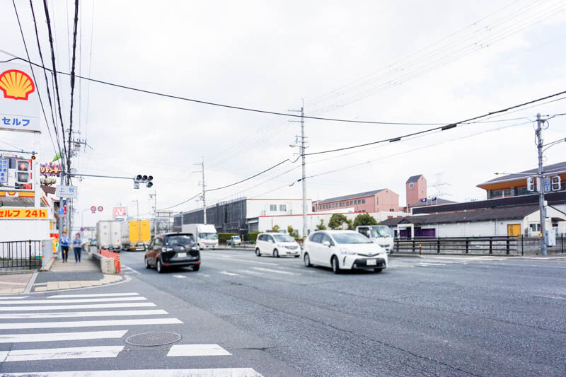 反対方向に行くと、びっくりドンキーやGU、家具店「マナベインテリアハーツ」、移転予定の大北製作所などがあり、京都方面です。