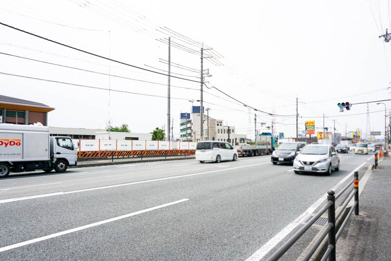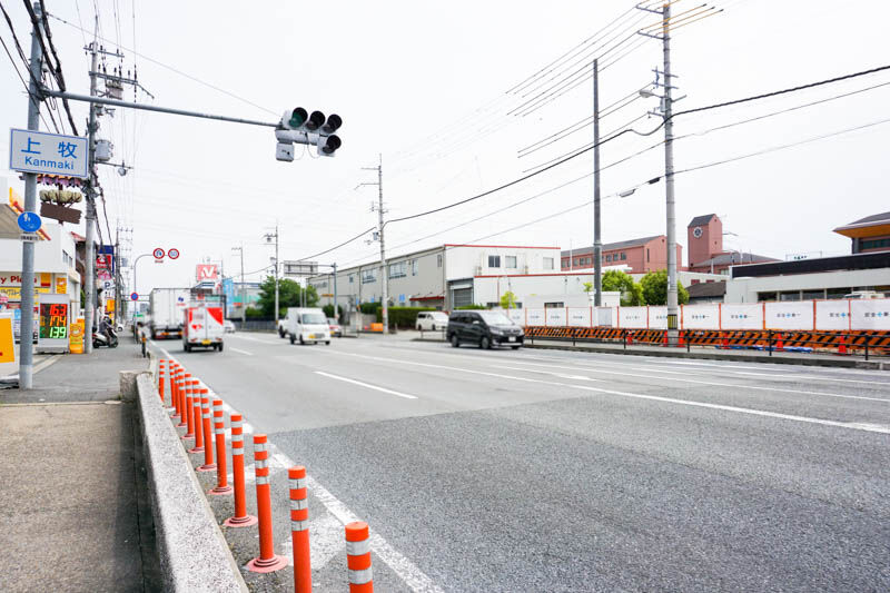 反対方向に行くと、びっくりドンキーやGU、家具店「マナベインテリアハーツ」、移転予定の大北製作所などがあり、京都方面です。