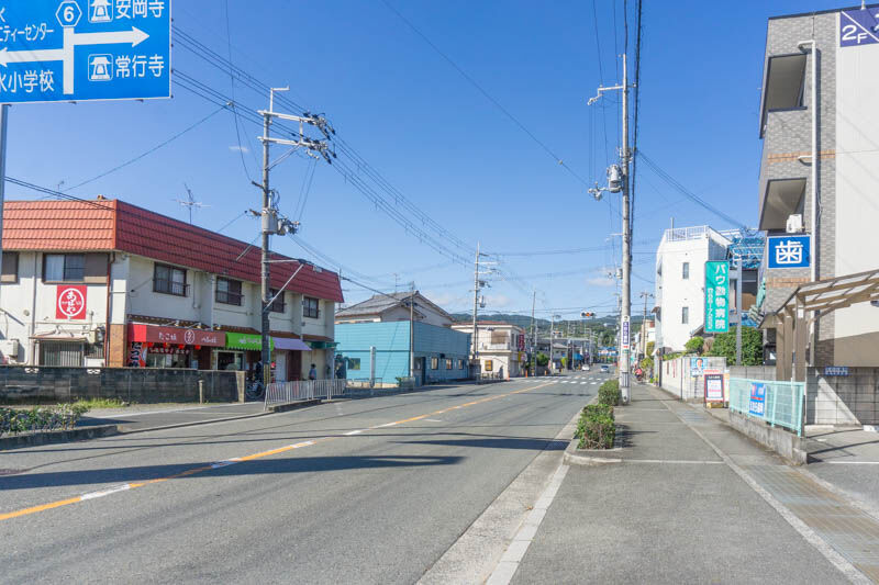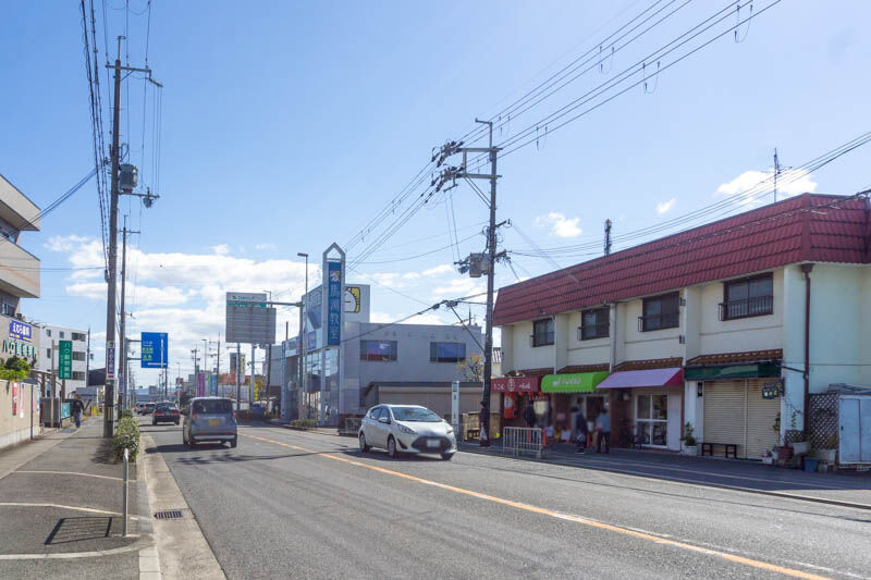 こっちに行くとゲオや、サンディなどがあり、名神高速道路の高架下をくぐると緑が丘病院や、病院の向かいにはスギ薬局グループの建物の建設予定地などがあります。