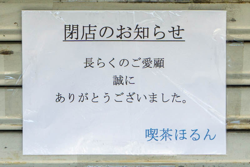 JR摂津富田駅ちかくの「喫茶ほるん」が閉店してる