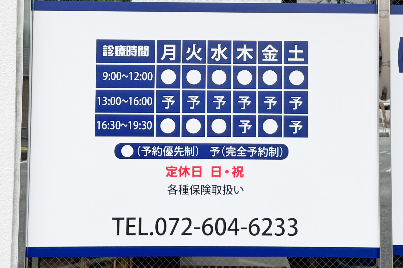 月火水金 9:00-12:00 / 13:00-16:00(完全予約制) / 16:30-19:30