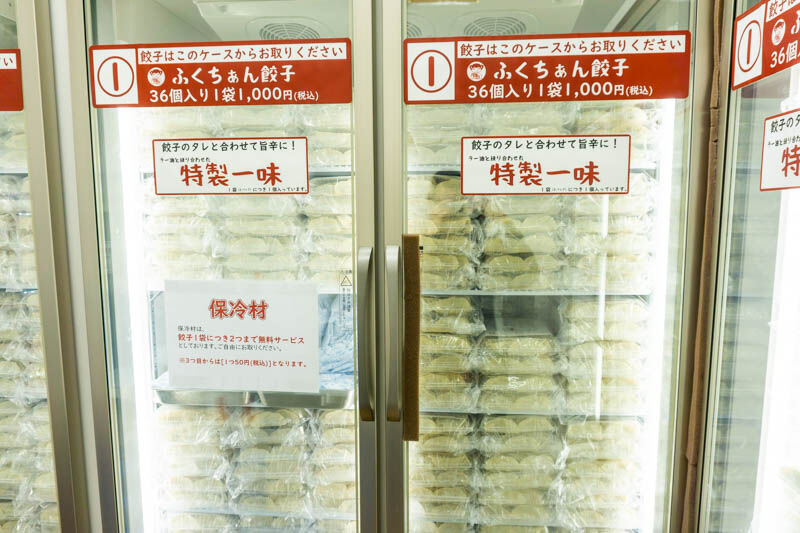 行った時はオープン初日ということで、お店の方がいてまして、今日は「冷凍ふくちぁん餃子」しかないですけど、違う味の餃子も置いたりすることもありますよ〜。と言ってました。