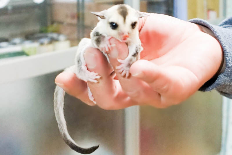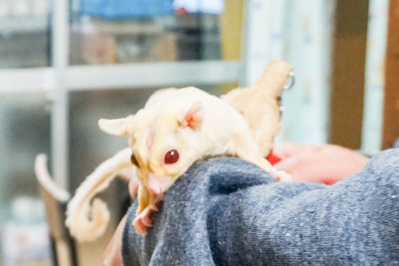 本来であればお店のオーナーさんが赤ちゃんから育てた小動物を販売しているとのことですが、フクロモモンガは今のところ赤ちゃんしかいないので、同じ小動物ブリーダーの友人の方から大きくなったフクロモモンガたちを迎える予定とも話されていました。