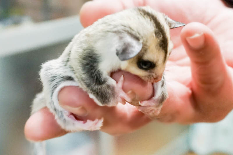 お店で大きく育ったフクロモモンガは年末にすべて新しい家族のもとに行くことになったそうで、今いるのはまだ産まれて間もない子ども達なんだそうです。