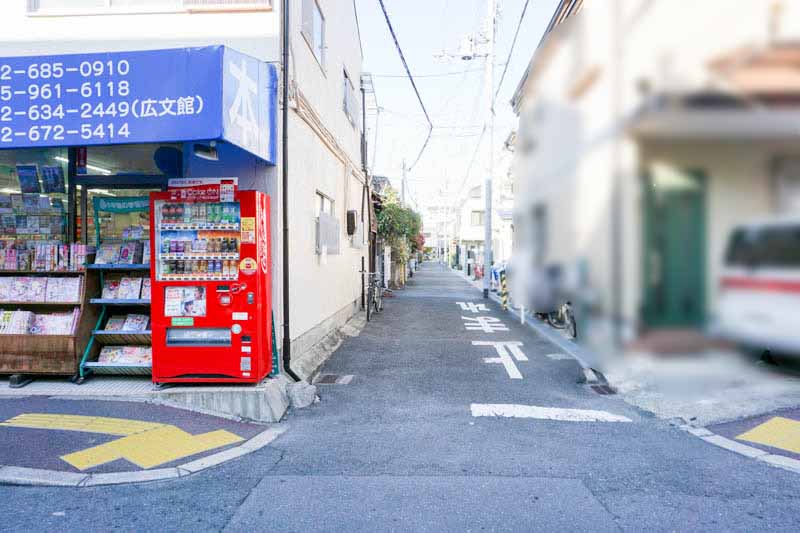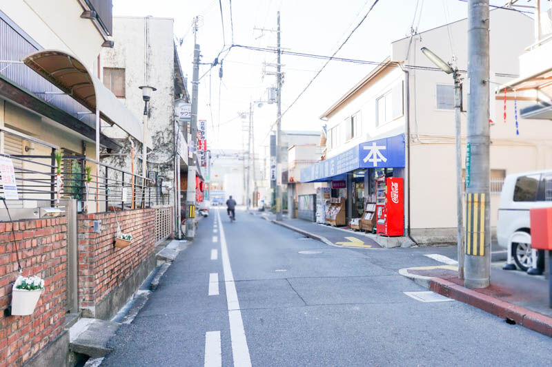 お店は国道170号線から少し入った場所で、こちらの長谷川書店の角を曲がるとすぐです。