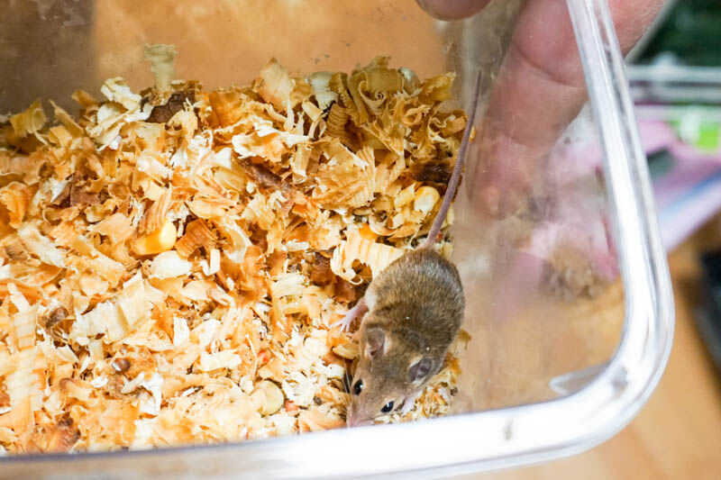 世界一小さいネズミも。親指の第一関節くらいの大きさでした。