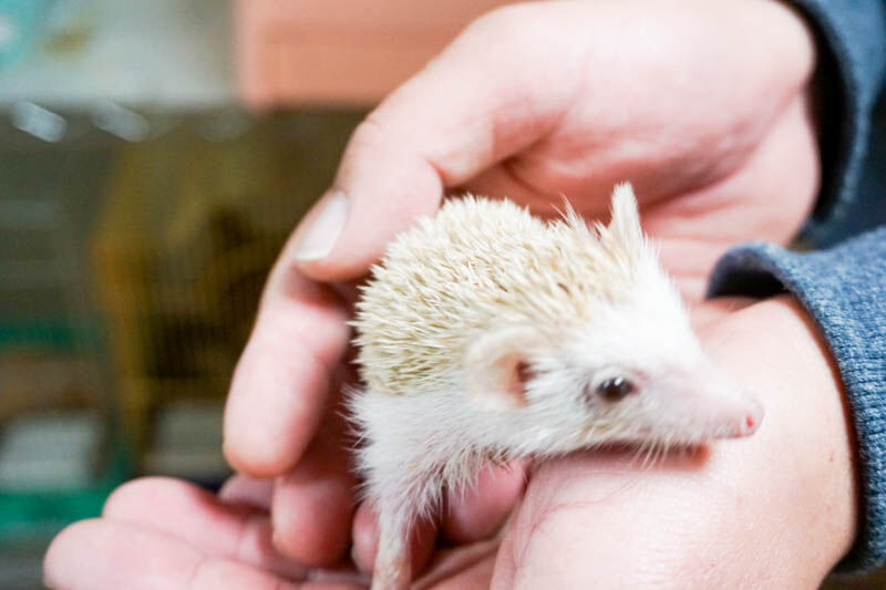 赤ちゃんハリネズミもいました〜!赤ちゃんから育てているため人に慣れている動物が多いんだとか。