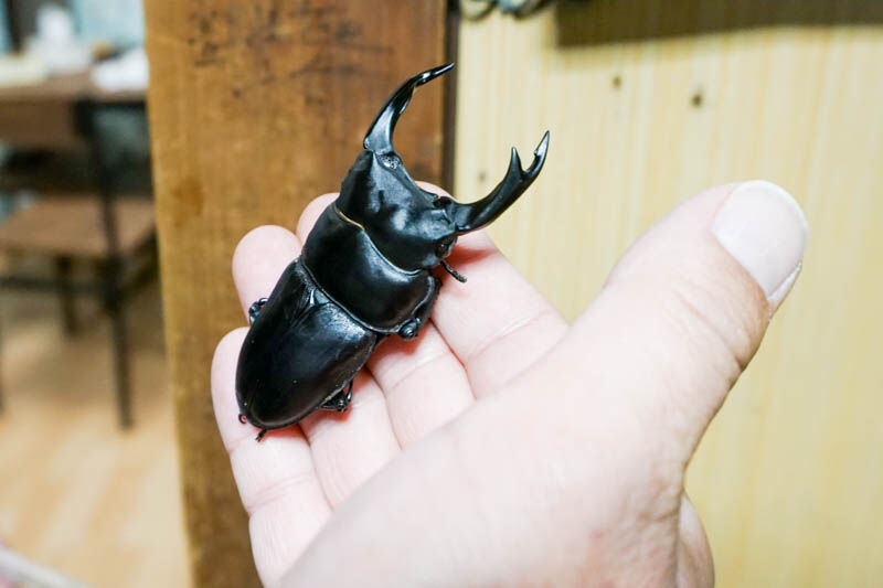 オーナーさんが茨木と高槻の山で獲ってきたオオクワガタなどを飼育しているのだとか。