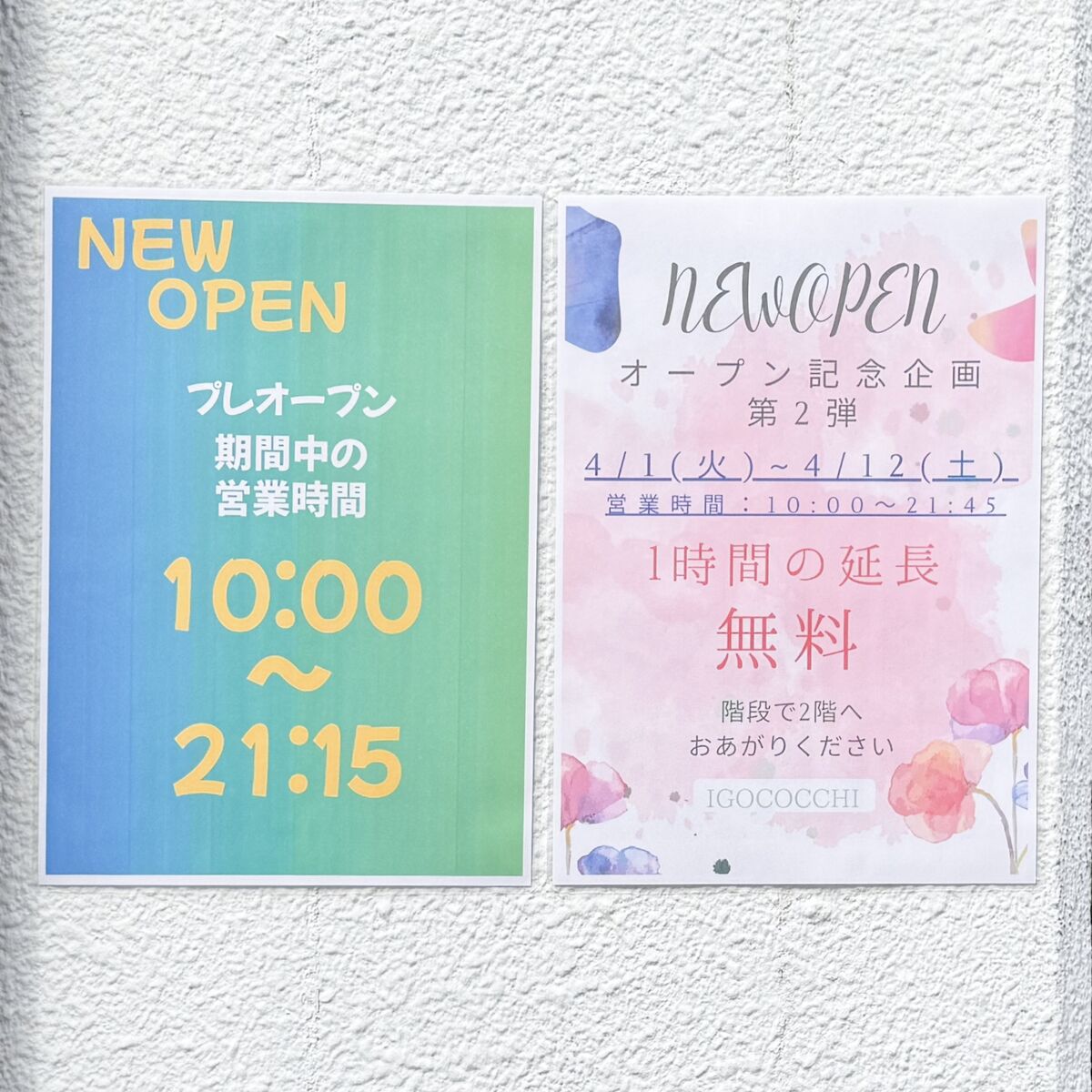 Instagramによると、3月27日(木)、28日(金)、31日(月)の3日間はプレオープン。4月1日(火)~4月12日(土)はオープン記念企画第2弾でキャンペーンをやっているそうです。
