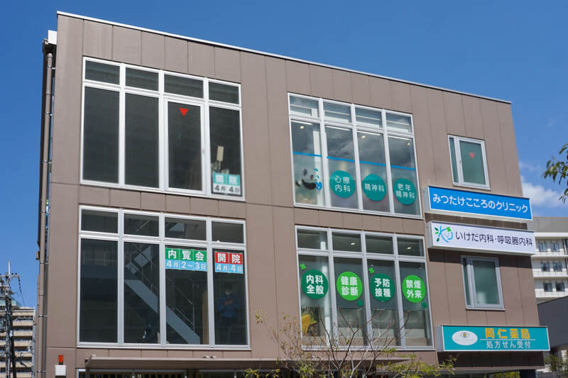 古曽部町につくってた「いけだ内科・呼吸器内科」と「みつたけこころのクリニック」が開院してる