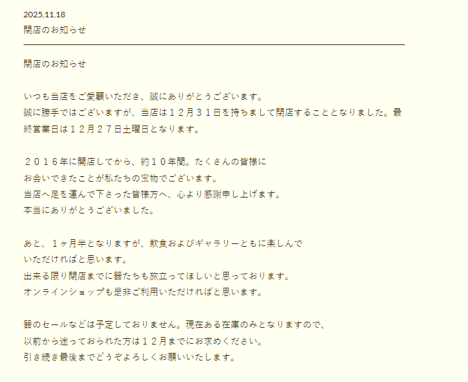 約10年営業されていたそうなので、お店に訪れたことがある方もいらっしゃるのではないでしょうか。