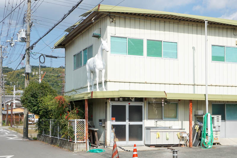 芋ICHIへは、この建物の2階にある白馬を目印に来ればわかりやすいかもしれません↓