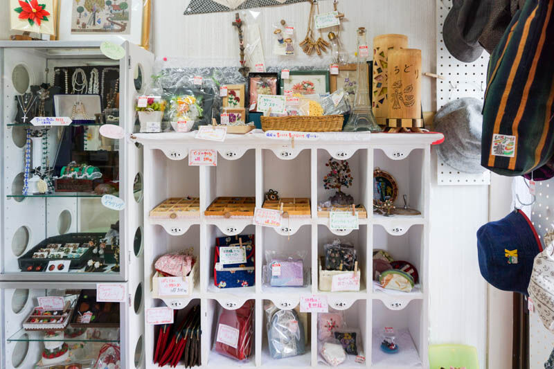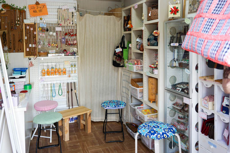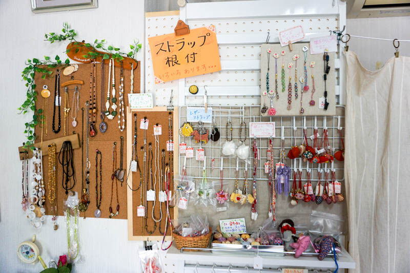 こちらのお店では、お店の方もハンドメイド商品をつくって販売しているのですが、その他にもいろいろなハンドメイド作家さんの作品も展示販売しているとのこと。