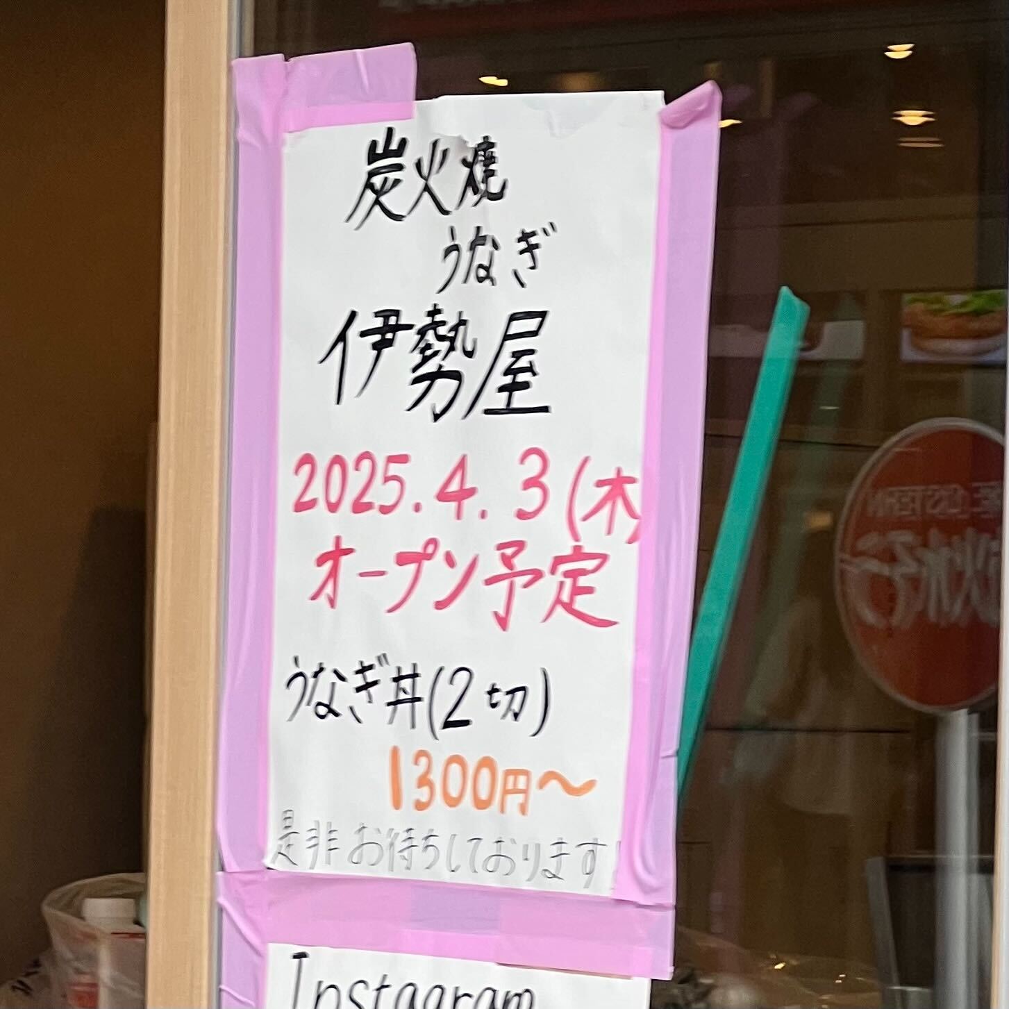 JR高槻駅近くの「活魚 伊勢屋」が『炭火焼うなぎ伊勢屋』としてリニューアルするようです。