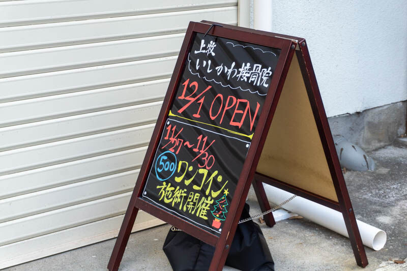 上牧駅ちかくに「上牧いしかわ接骨院」ができるみたい。12月1日オープン