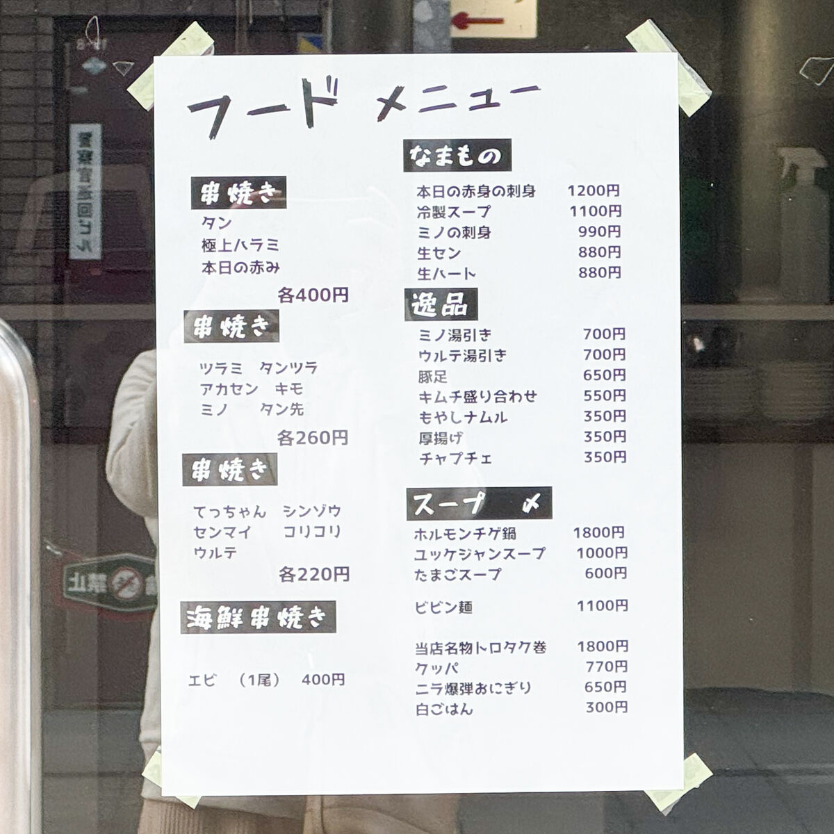 赤身やホルモン、海鮮の串焼き、なまものや逸品もあるようです!