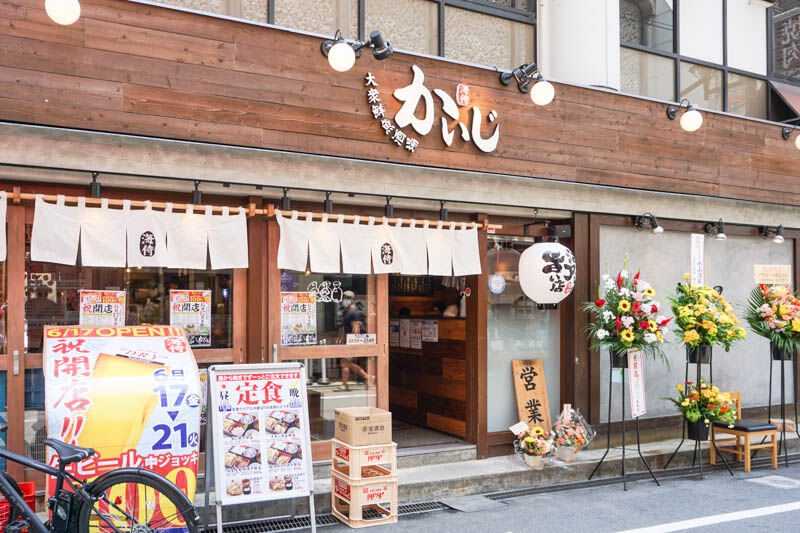 阪急高槻市駅ちかくにつくってた居酒屋『大衆鮮魚酒場 かいじ』がオープンしてる。「餃子のトロたん」からのリニューアル