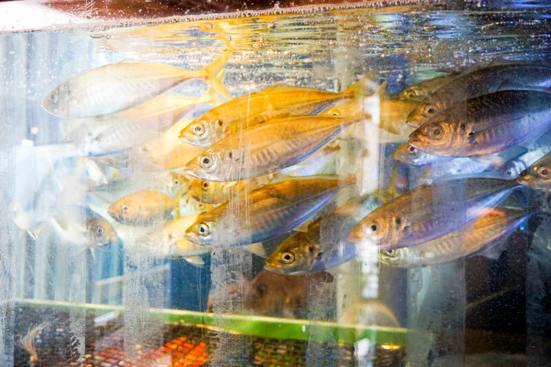 水槽があるので新鮮な魚が食べられますね。