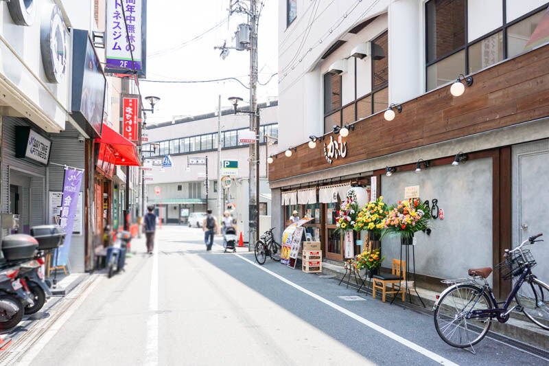 中央の白い建物の1階です。「大衆酒場 餃子のトロたん」からのリニューアルとなり、『大衆鮮魚酒場 かいじ』がオープンすることは以前にも記事にしています。
