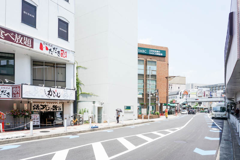 反対側の出入り口からこっちに進めば三井住友銀行があって、阪急高槻市駅に。