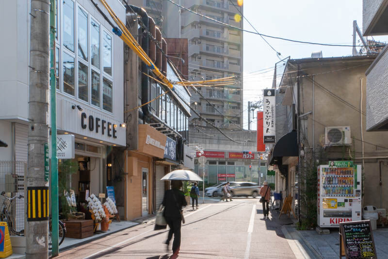 こっちに行くとラーメン店「くそオヤジ最後のひとふり」などがあって、さらにずっと進むとJRの線路沿いの方へ。