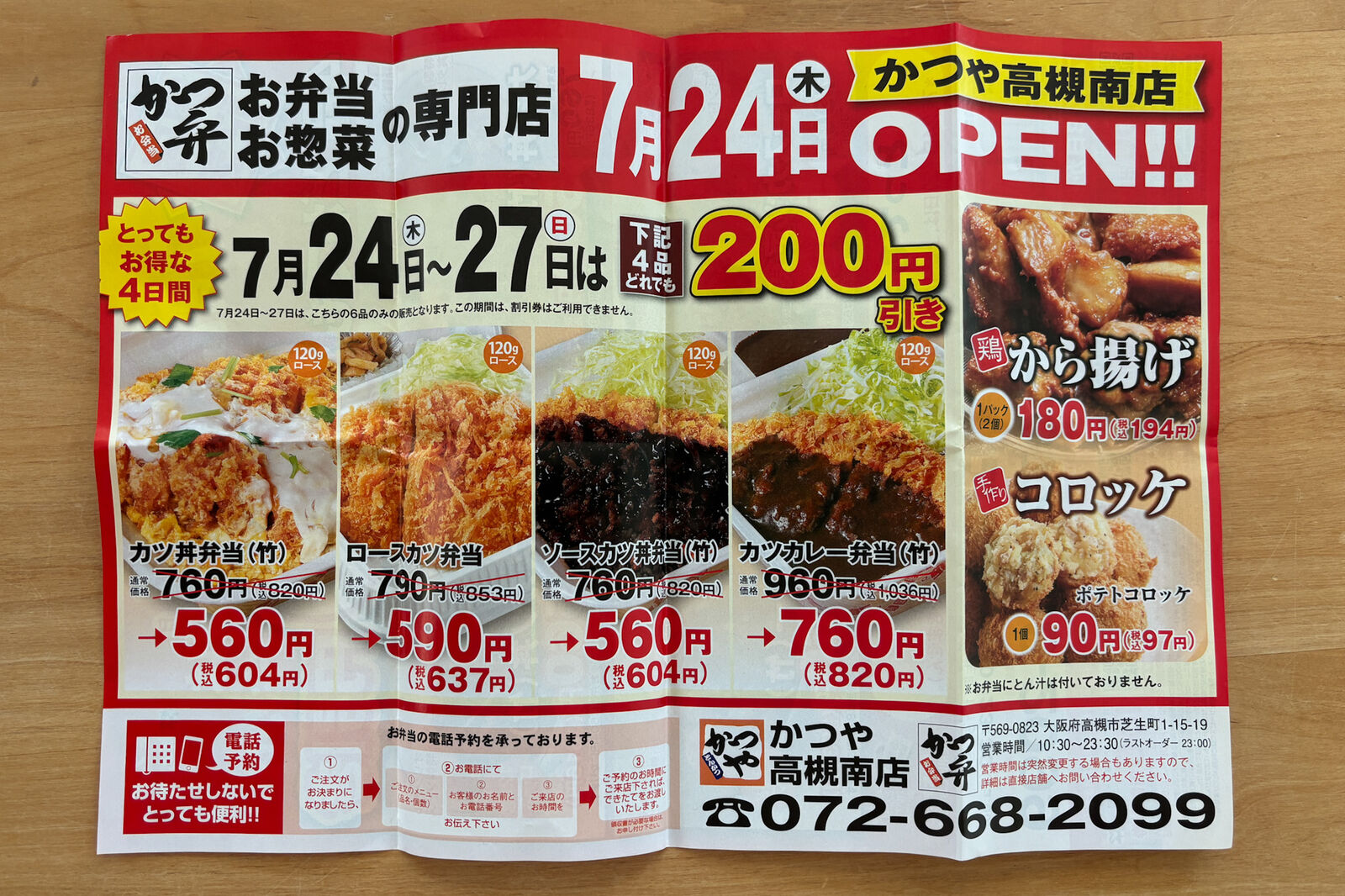 開店記念として7月24日~7月27日の4日間はカツ丼やロースカツ定食などが特別価格で販売しているんだとか!