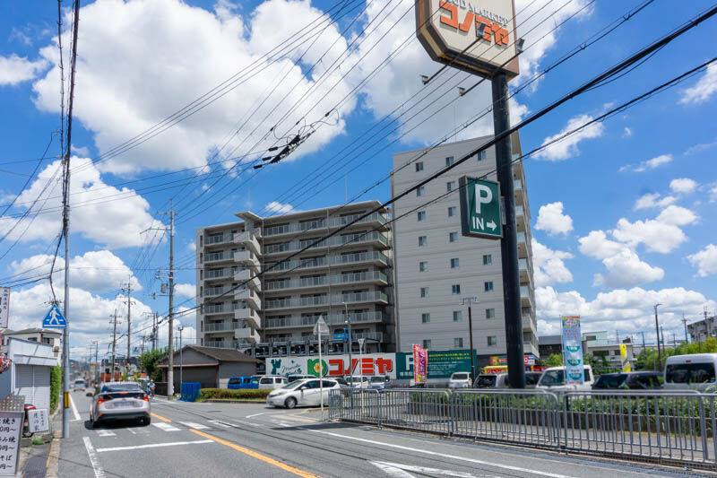府道132号線からコノミヤ側の道へ入ると、自転車などであればトップワールドの前まで抜けられる道がありまして、店舗ができたのはコノミヤの左側。