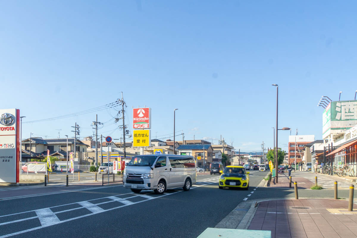 こっちに行くと、和食さとやすき家、ジョリーパスタなどがあり、ローソンのそばから府道132号線へ。