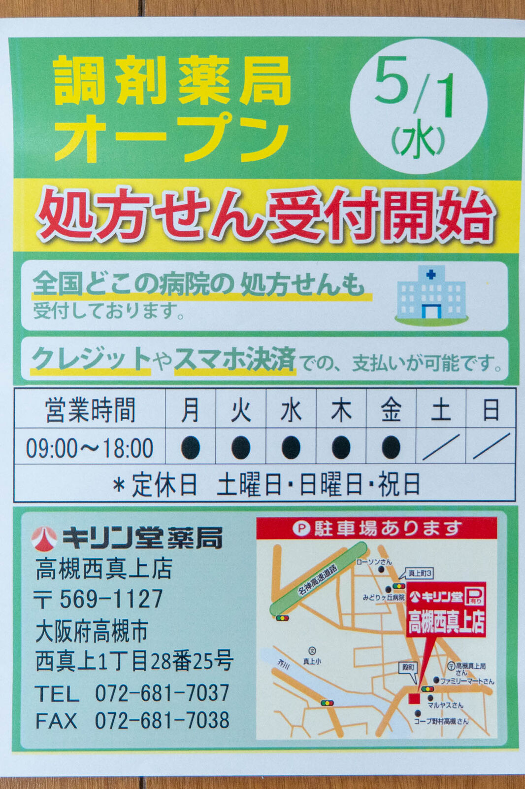 府道6号線沿い西真上の「キリン堂 高槻西真上店」に調剤薬局ができるようです。