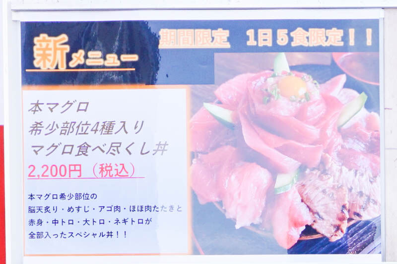 1日5食限定の「マグロ食べ尽くし丼」が新メニューとして追加されたそうです!