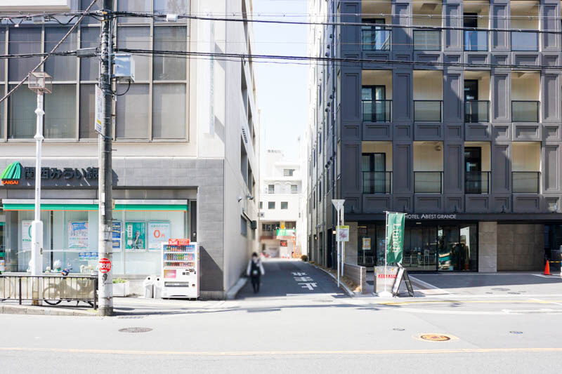 JR高槻駅北口から少し歩いたところにあるのですが、ホテルアベストグランデ高槻と関西みらい銀行の間の路地を入るとすぐです。