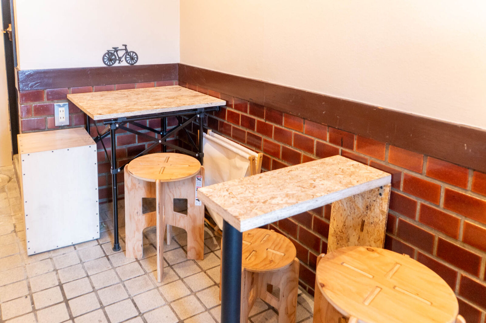 イートインスペースもありますよ〜!ルーツである自転車もオブジェも店内の至る所に…!