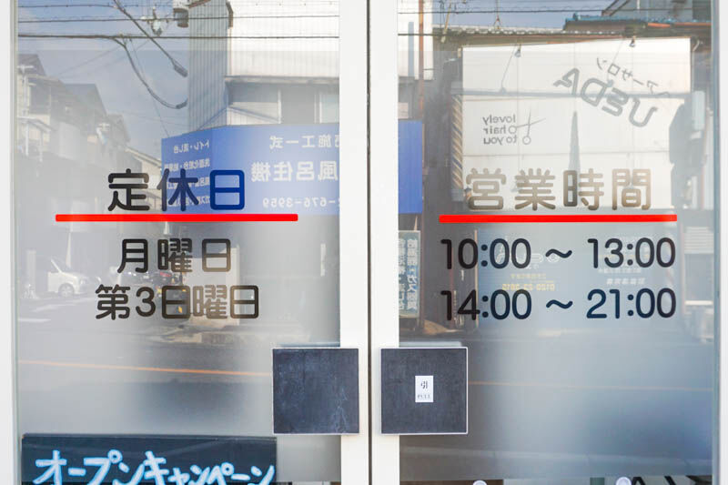 平日−土曜日10:00-13:00/14:00-21:00(最終受付20:45)