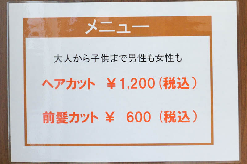 ヘアカット1200円(税込)、前髪だけのカットもしてくれるのですね。ちょっと前髪だけ気に入らない時とか嬉しい!