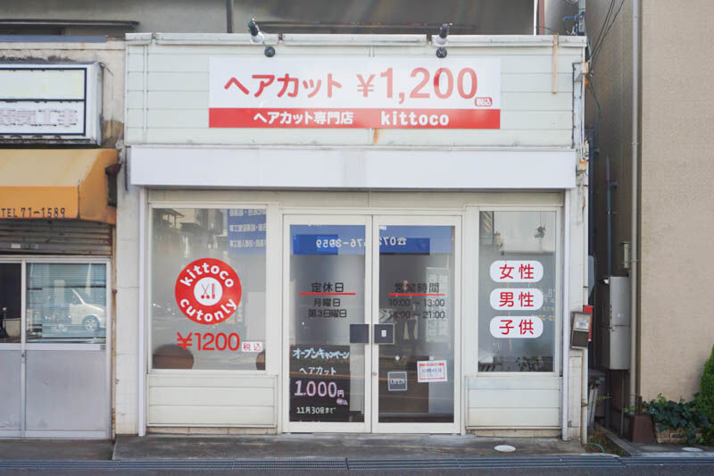 府道132号線ぞい津之江町に「kittoco(キットコ)」ってヘアカット専門店のお店ができてる。1200円カットのお店