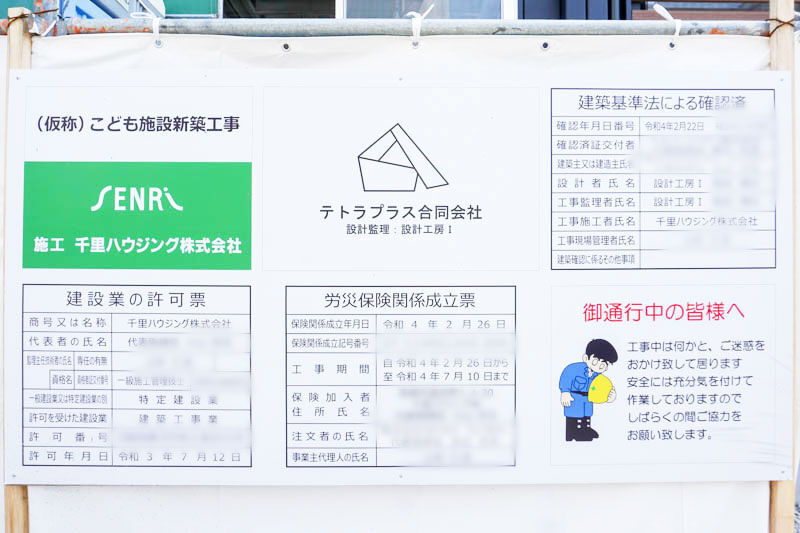 寿町に「(仮称)こども施設新築工事」ってこども施設つくってる
