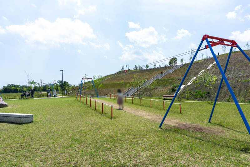 茨木に新しい大きな公園「彩都はなだ公園」が開園してる。ハンモックみたいな珍しいブランコも