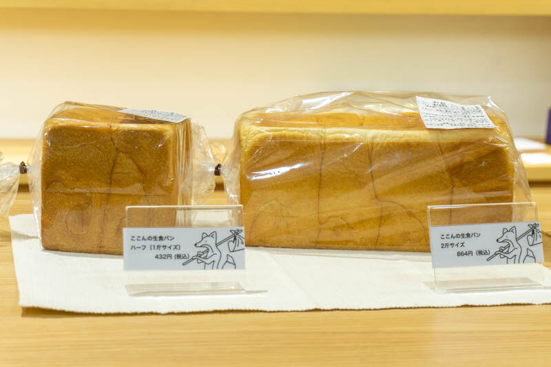 ここんの生食パンは国産と北米産の小麦粉、北海道産100%の生クリーム、奄美大島産の「素焚糖(すだきとう)」を使用した食パンなんだとか。